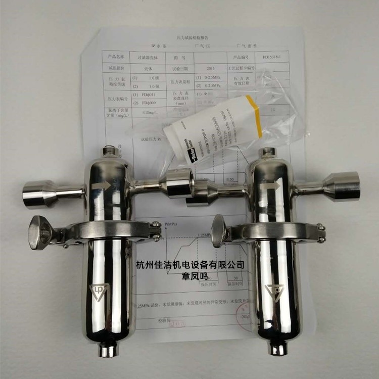 杭州佳洁长期生产食品级不锈钢过滤器,产品经第三方检测认证,公司生产的滤芯滤材经第三方按FDA标准检测认证,各个微米,颗粒物数量经第三方检测认证,除尘、除油水、除菌效果经第三方检测认证。杭州佳洁提供不锈钢过滤器GMP认证、AIB认证材料,帮助企业顺利通过生产认证考核。