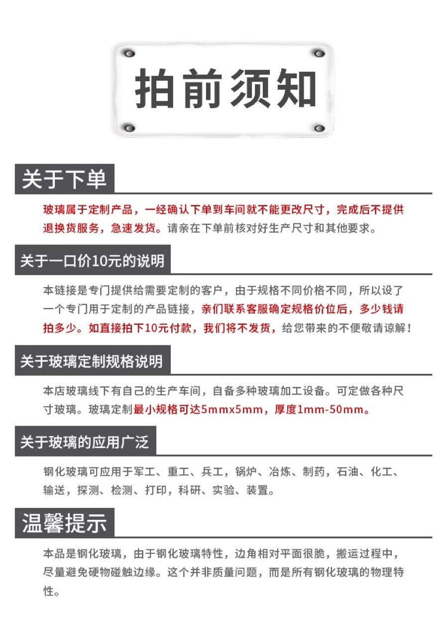 本产品为定制型产品,商品价格为临时设置价格,需用户提供玻璃尺寸,数量,方可报价。