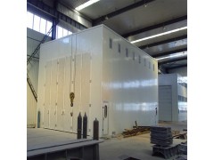 ◦ 侧面下冲式喷漆房:空气从喷漆房的天棚进入,然后由侧面墙根排出。这种气流走向能使喷漆过程中的空气环境得到较好的控制,喷漆效果和工作环境都优于横流式,适用于有一定规模和品质要求的喷漆作业。