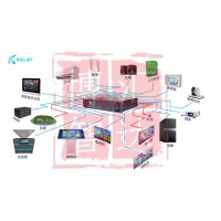 中控硬件设备主要包括:中控务器C300E、可编程分控主机K700、串口控制单元、设备控制模组、可编程逻辑管理终端、Pad移动控制端、PC固定控制器、信号增强放大单元、可编程电源控制器组成。能够对博物馆内的投影机、LED全彩屏、广告屏、触摸一体机、电视机、灯光、音响设备等多媒体设备进行集中管理控制,可实现设备的一键开关、灯光联动、视频自动播放内容等。